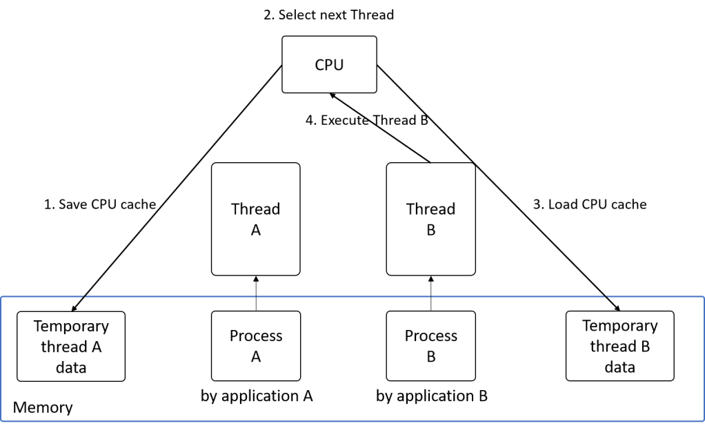 以生活上舉例, 當需要同時處理多件工作時, 進行中的工作必須把目前進度、待辦事項等資料記錄下來, 然後再把另一件工作的紀錄取出來, 查看進度與後續動作, 接著繼續處理工作. 對 CPU 而言也是如此, 當載入多個應用程序時, 作業系統就必緒適當分配合理的運算時間給這些應用程序的執行緒. 像這樣將 CPU 的資源從分配給某個執行緒切換到另一個執行緒的行為就是 Context Switch.