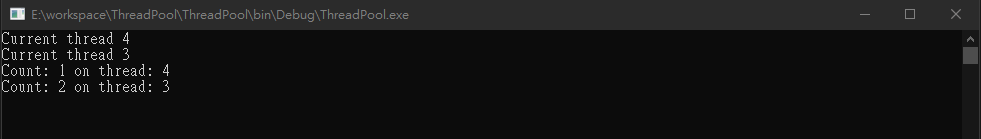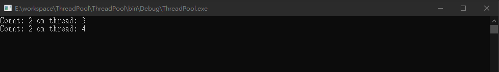 Console.WriteLine("Count: {0}", count + " on thread: " + Thread.CurrentThread.ManagedThreadId);