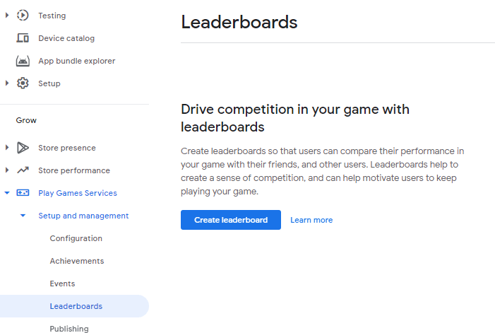 Play 遊戲服務 (Play Games Services) >設定與管理 (Setup and management) > 排行榜 (Leaderboards)
