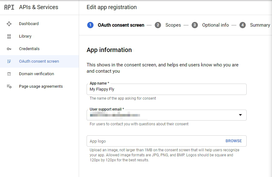 輸入些必要資料 (像應用程式名稱, 聯絡/反應信箱…), 可以先填後來再修改.