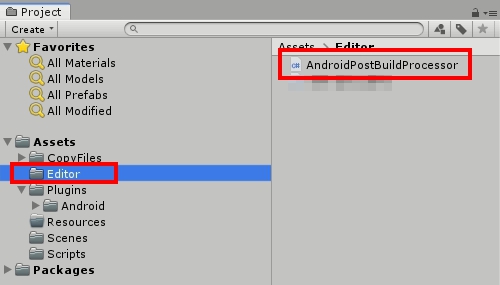 將該檔案置於 Editor 資料夾下. (不一定要叫做 AndroidPostBuildProcessor, 但一定要實作 IPostGenerateGradleAndroidProject)