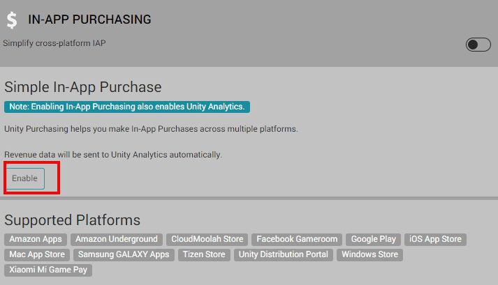 Unity 作為一個跨平台遊戲開發工具, 也少不了提供整合平台的內購付費嵌入服務. 省去開發者需要逐一加入IAP的套件, 還要處理平台間彼此衝突的問題.