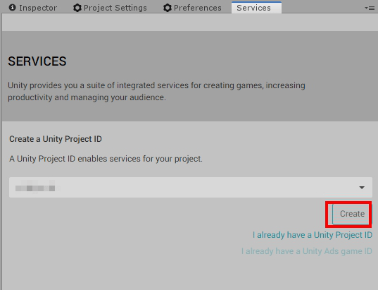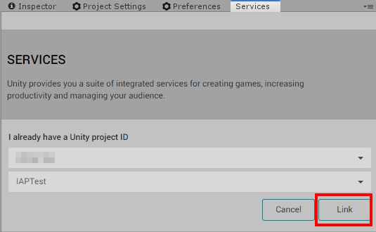 如果還未將 Unity 專案綁定 ProjectID, 會被要求創建或連結.